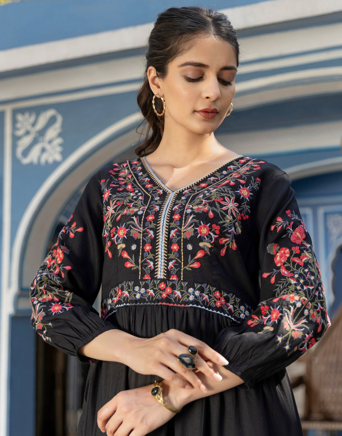 Women's Rayon Black Embroided Dress I Ethnic Midi Dress