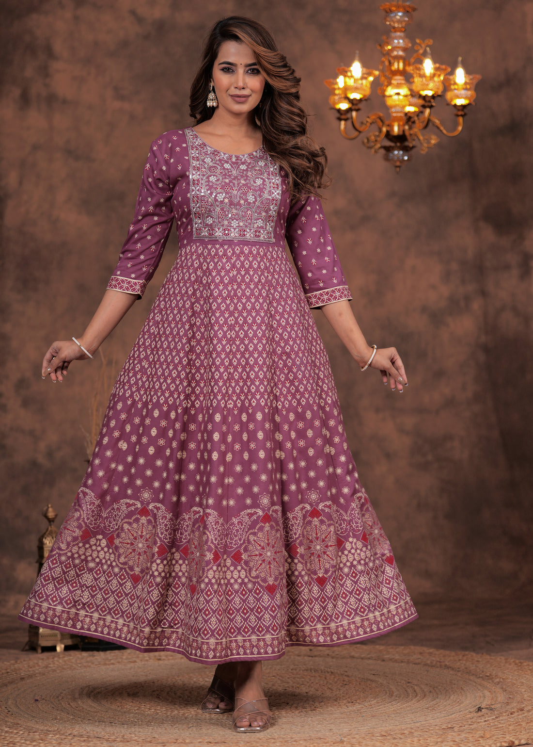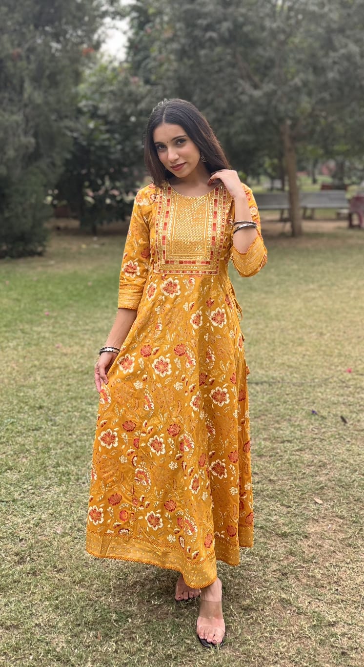 Women's Cotton Printed Dress | Ethnic Anarkali Dress with Sequin & Zari work