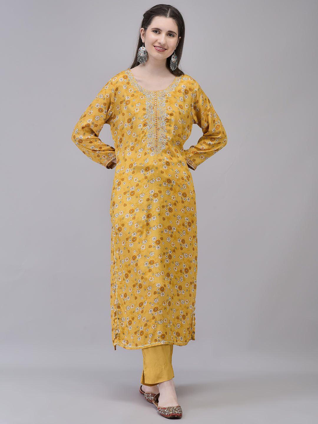 Women's Yellow Cambric Fabric Floral printed Kurta Set
