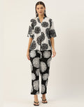 Step into effortless elegance with this chic Black and White Cotton Printed Co-ord Set. Crafted from soft, breathable cotton fabric, this stylish ensemble features a smart collared top with a bold floral print and matching straight-fit pants in a striking contrast design. The monochrome palette makes it a timeless wardrobe staple, perfect for casual brunches, travel days, or statement streetwear looks. Comfortable, classy, and versatile—this co-ord set is a must-have for the modern woman who loves fashion with flair.