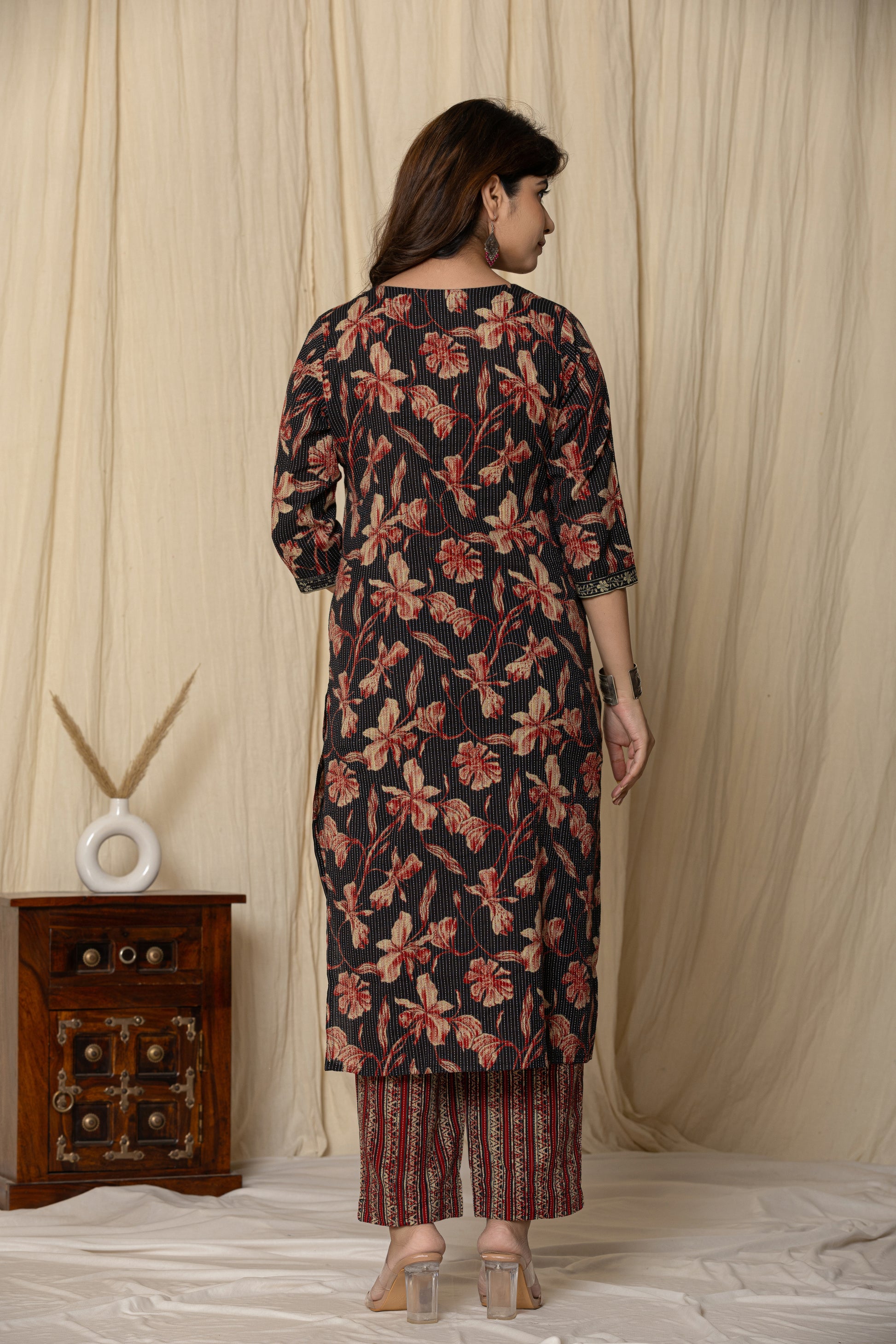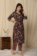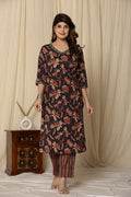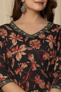 Women's black cotton Fabric Floral Kurta Set
