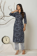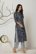 Women's Black Cotton Fabric Printed Kurta Set