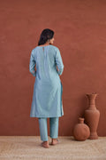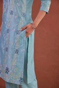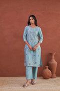 Step into effortless elegance with this blue cotton embroidered ethnic kurta set. Crafted from soft and breathable cotton fabric, this set features intricate floral embroidery that adds a touch of grace and tradition. The straight-fit kurta, paired with matching pants, is perfect for festive gatherings, casual outings, or everyday ethnic charm. Designed with three-quarter sleeves, a round neckline, and detailed threadwork, this embroidered cotton kurta set blends comfort and sophistication for the modern woman who loves timeless style.