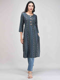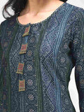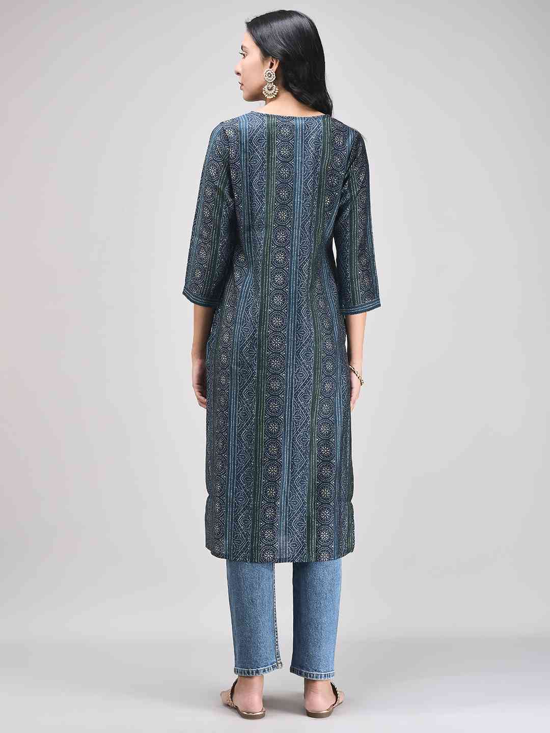 Women's Blue Muslin Bandhani Print Kurta | Ethnic Straight Kurta