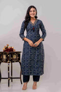 Women's Blue Muslin Fabric Printed Suit Set | Ethnic Straight Kurta with Pants & Printed Dupatta