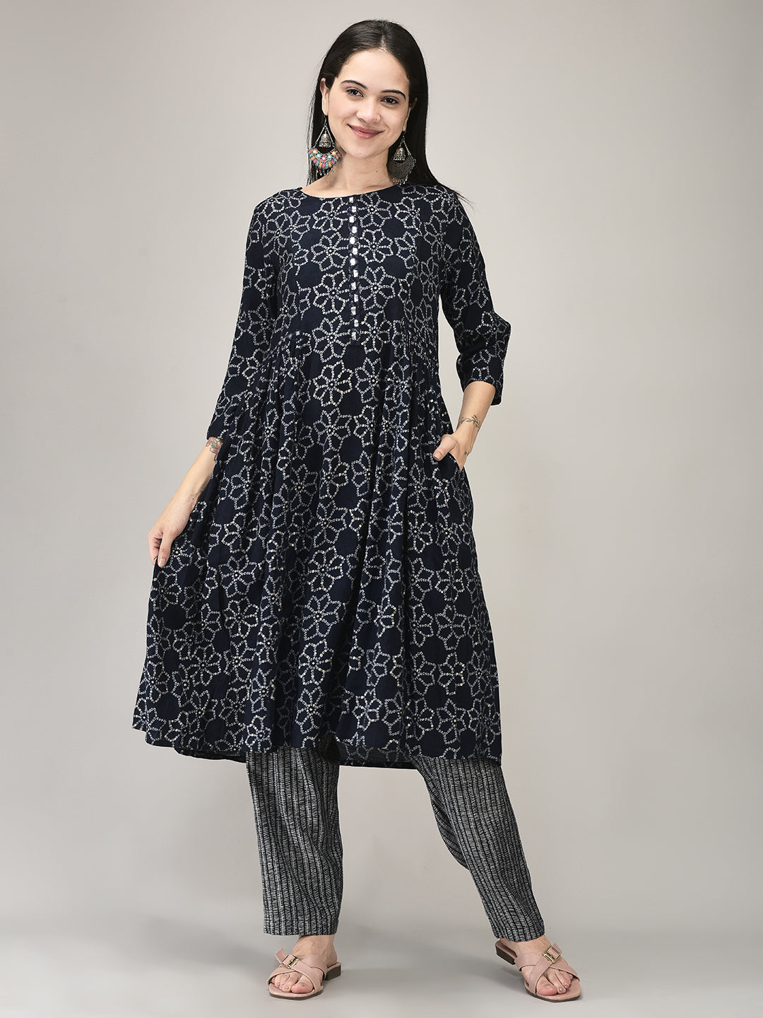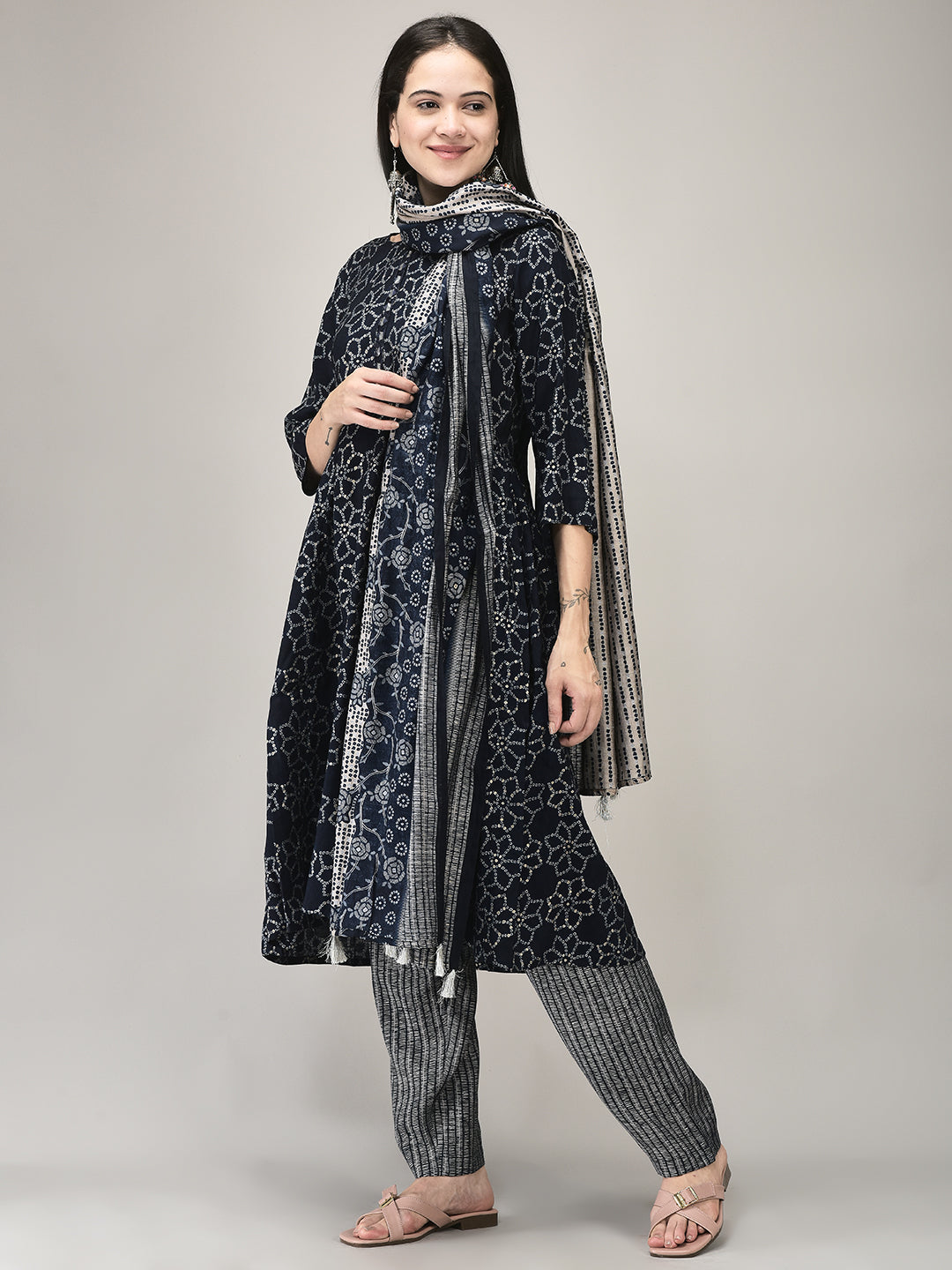 Elevate your ethnic wardrobe with this Blue Rayon Printed Suit Set, crafted from soft, breathable rayon fabric. The straight-cut kurta showcases intricate prints, complemented by matching pants and a coordinating printed dupatta for a cohesive look. Ideal for casual outings, festive gatherings, or stylish daywear, the calming blue hue and comfortable fit offer both elegance and ease. A versatile ensemble that seamlessly blends traditional charm with contemporary flair—perfect for women’s ethnic wear.