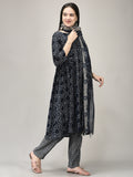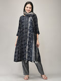 Women's Blue Rayon Fabric Printed Suit Set | Ethnic Printed Kurta with Pants & Dupatta