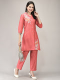 Chic Coral Elegance: Embroidered Co-ord Set