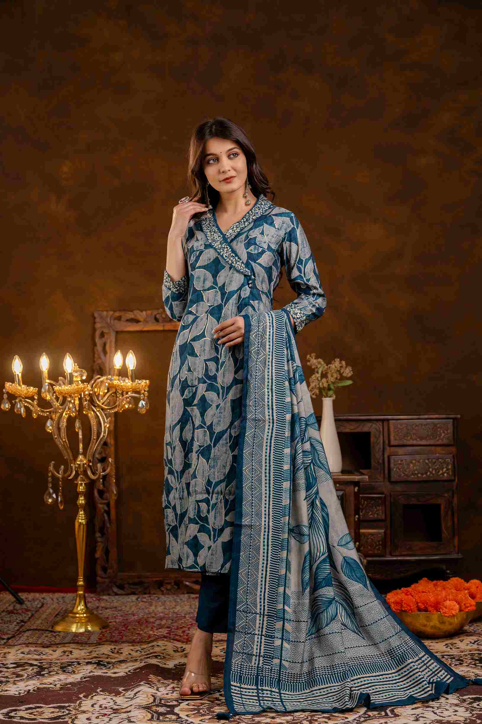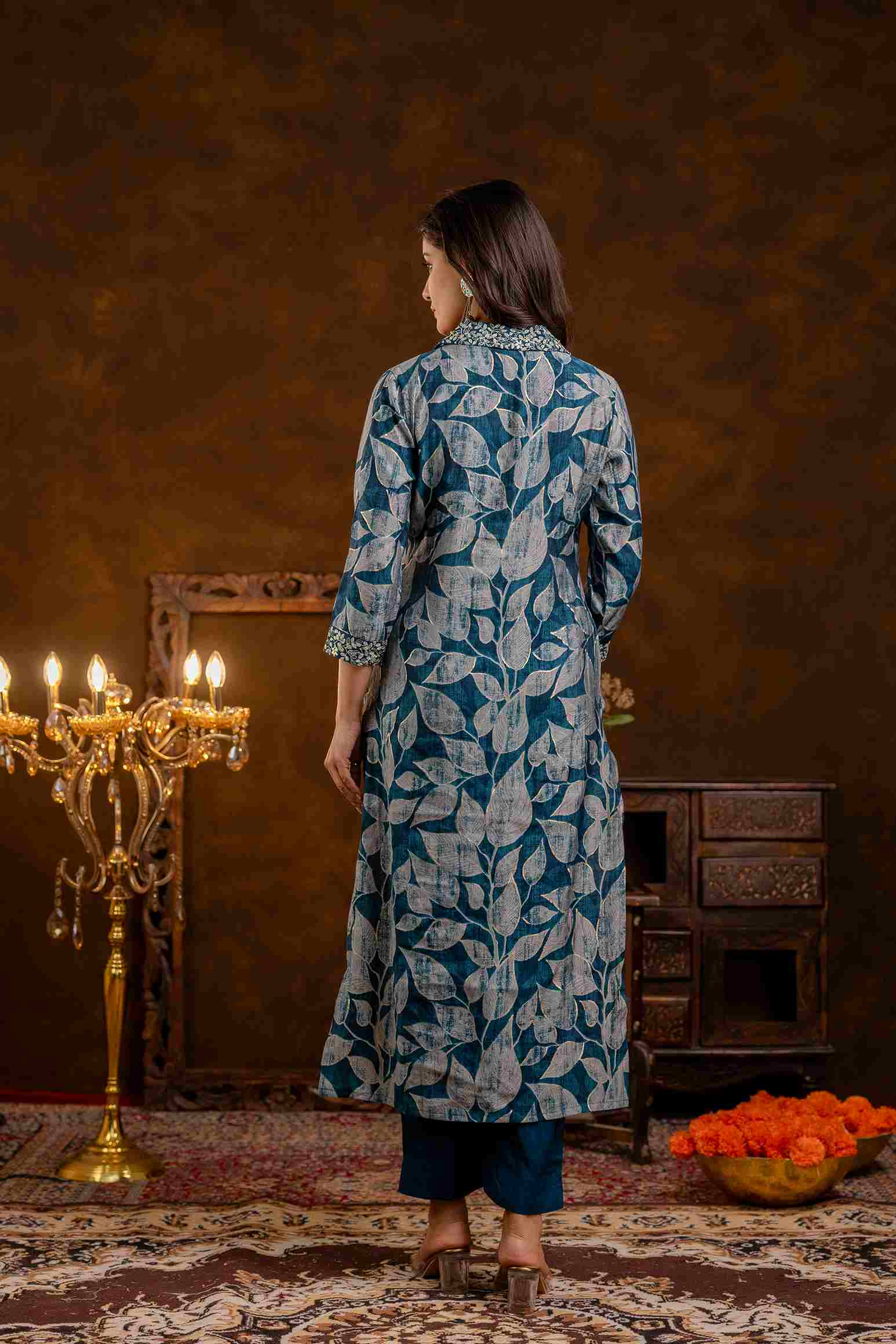 Gracefully designed for festive and elegant everyday wear, this kurta set brings together traditional craftsmanship and contemporary styling. The kurta features an all-over botanical-inspired print, enhanced with a beautifully detailed overlap neckline that adds a refined touch to the silhouette. The straight fit ensures comfort while maintaining a flattering and structured look.