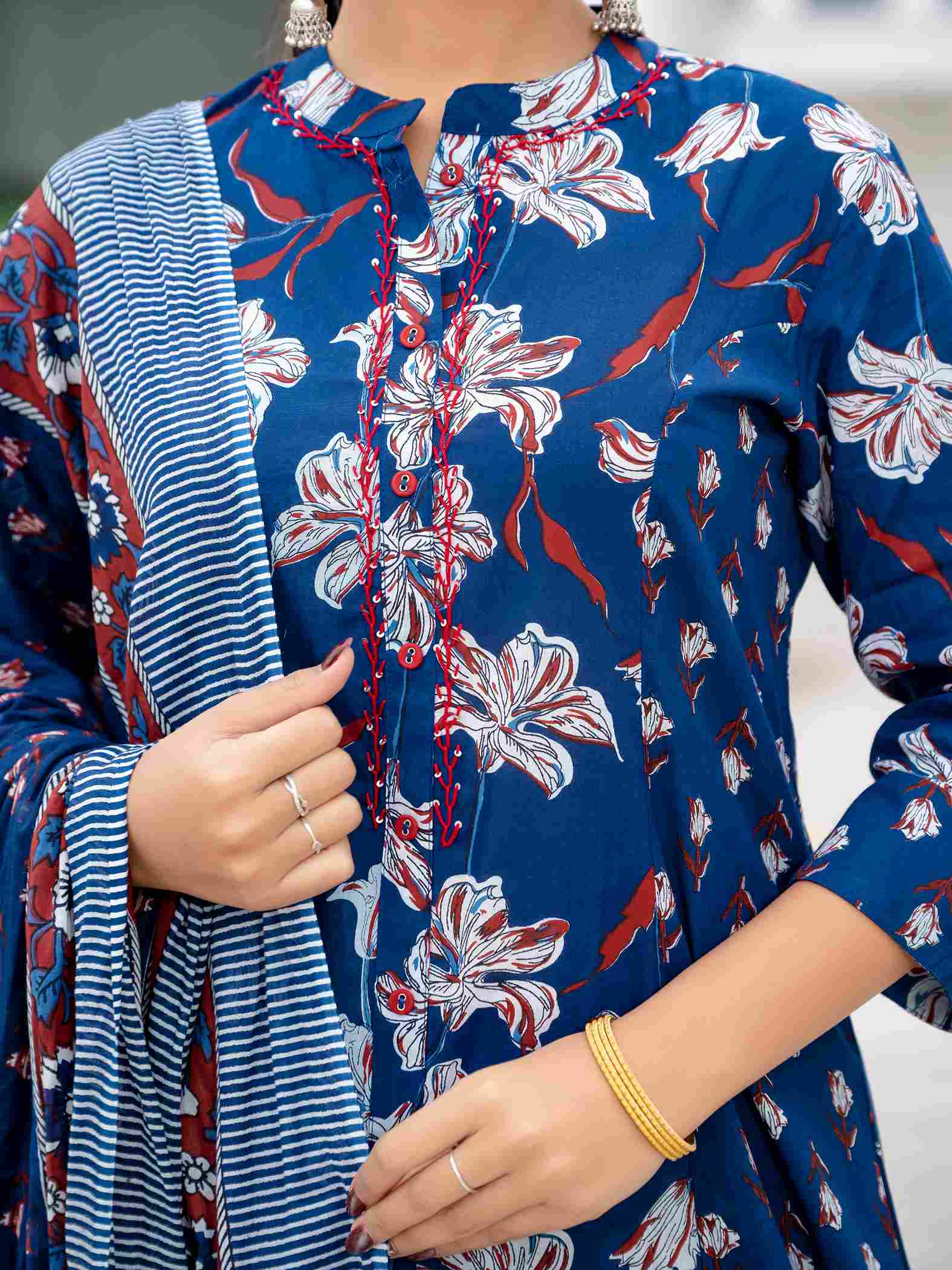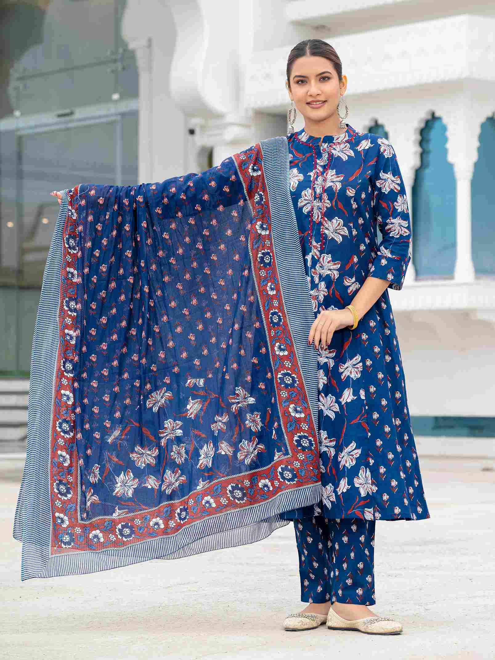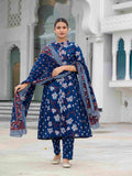 Women's Cotton Fabric Printed Suit Set | Ethnic A-line Kurta with Pants & Printed Dupatta