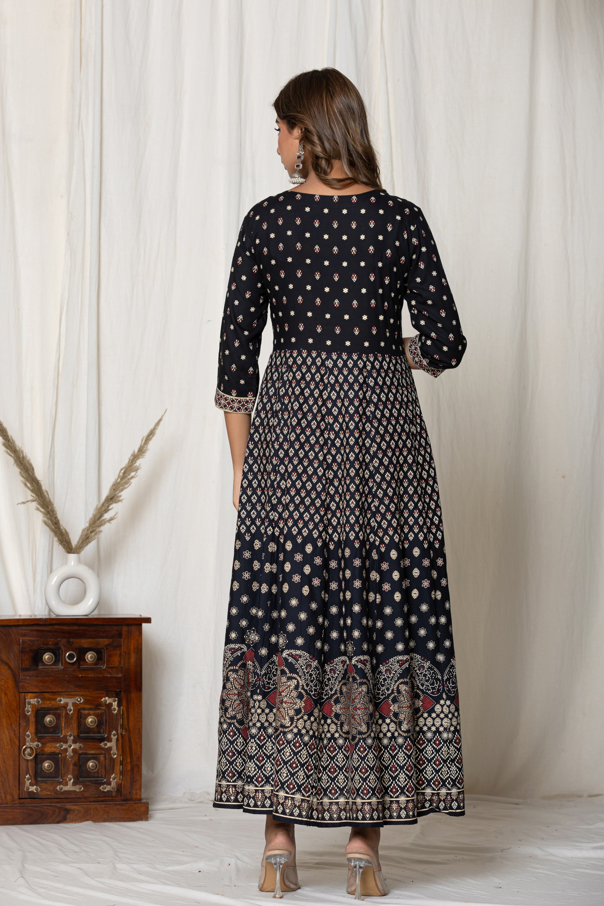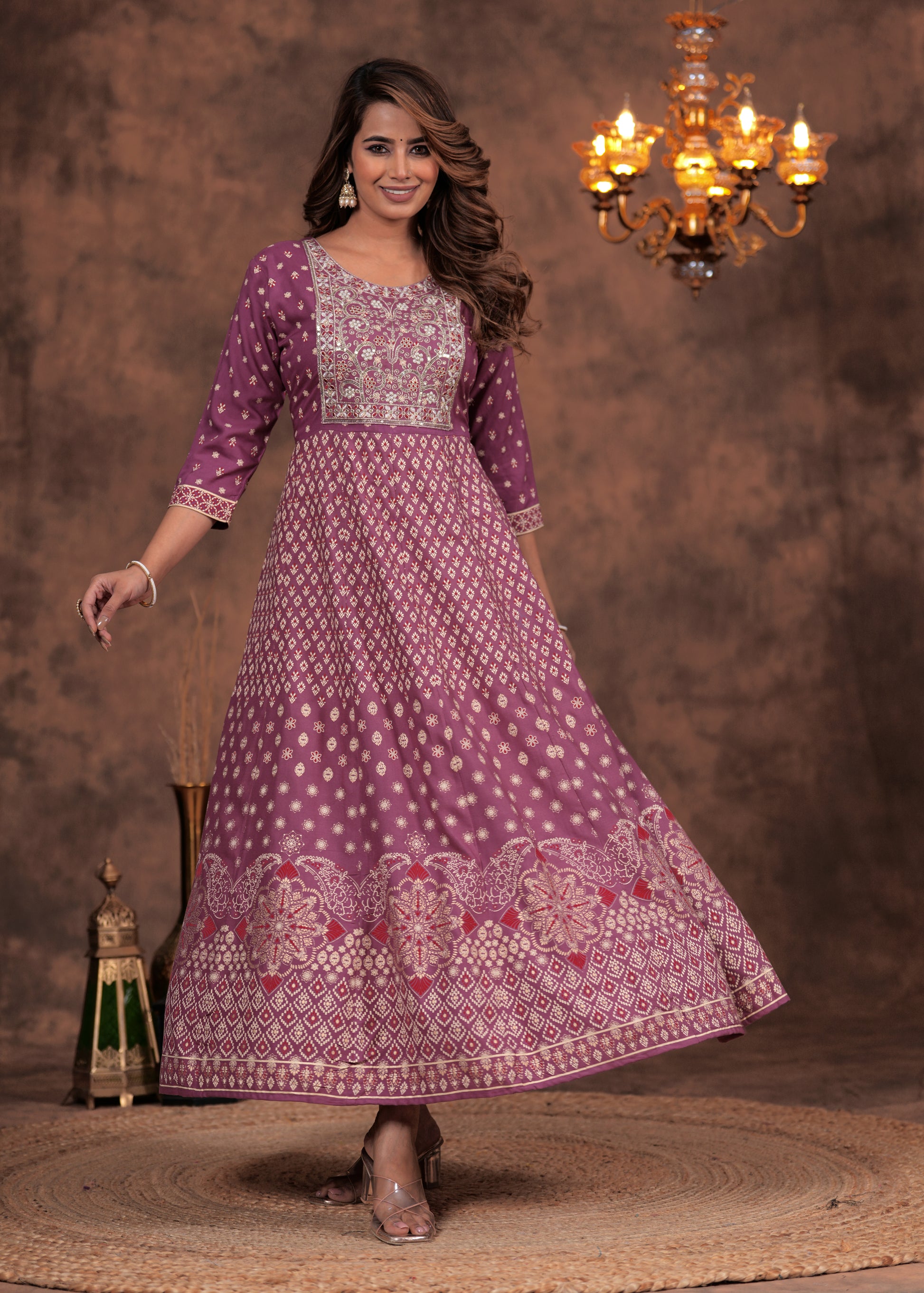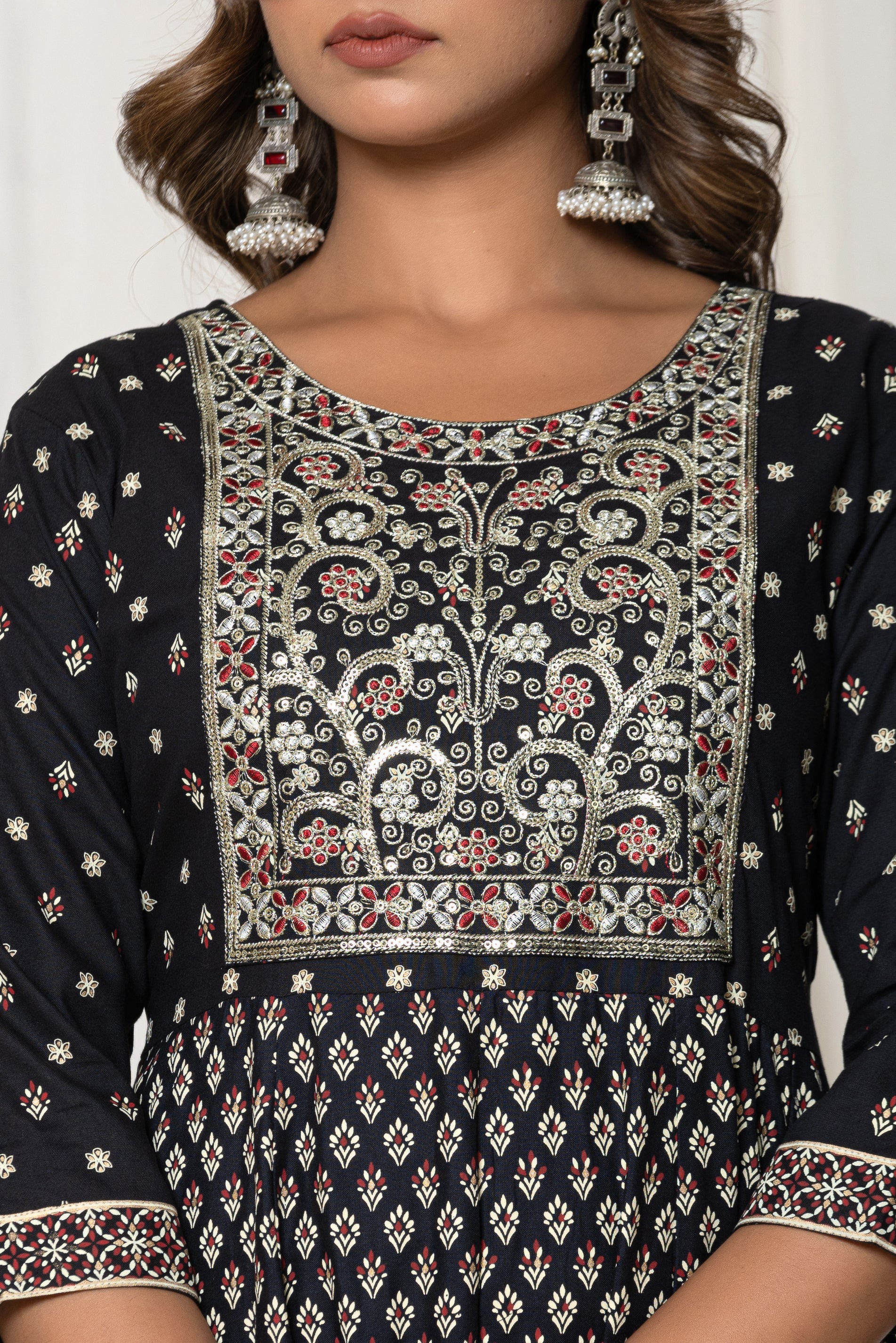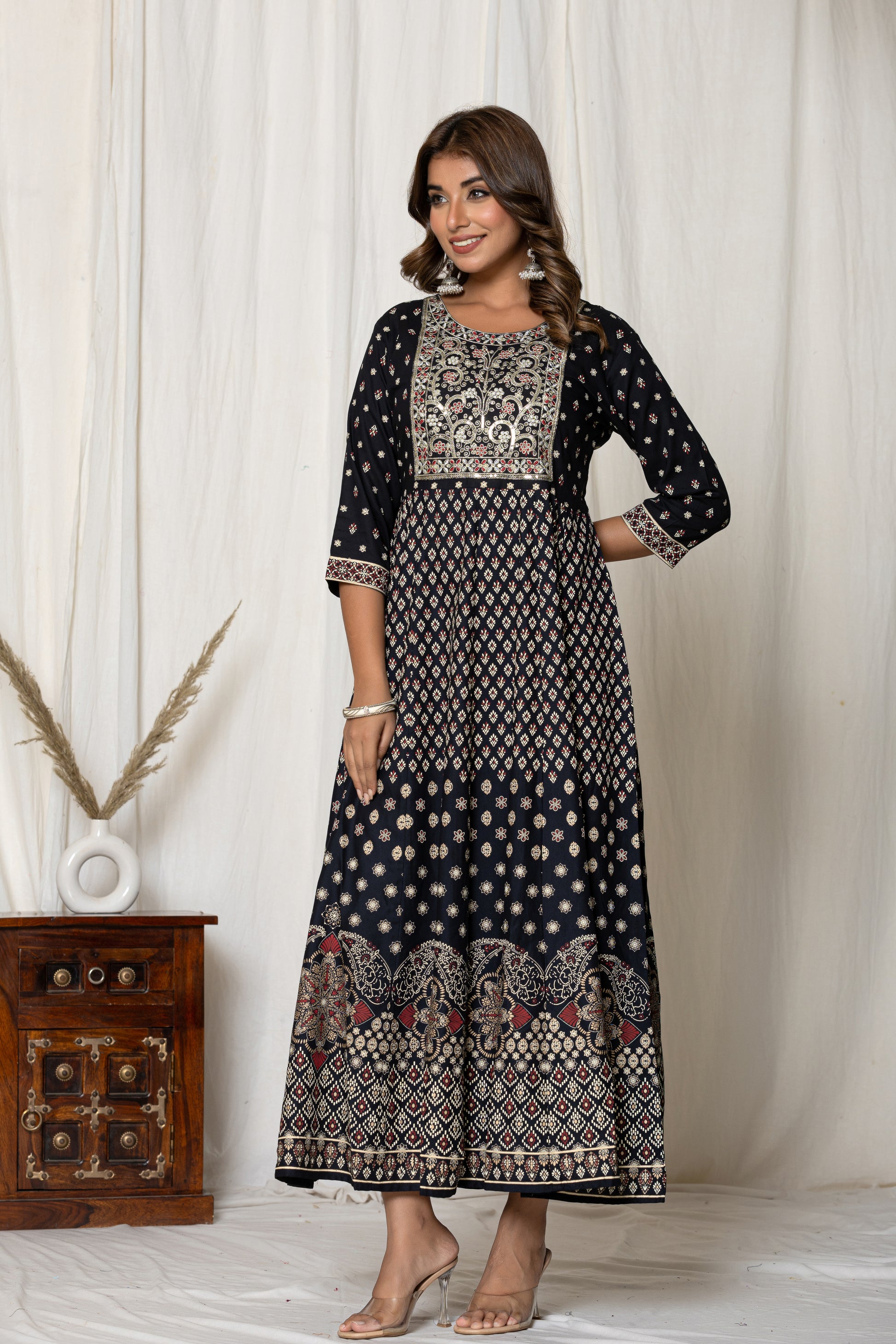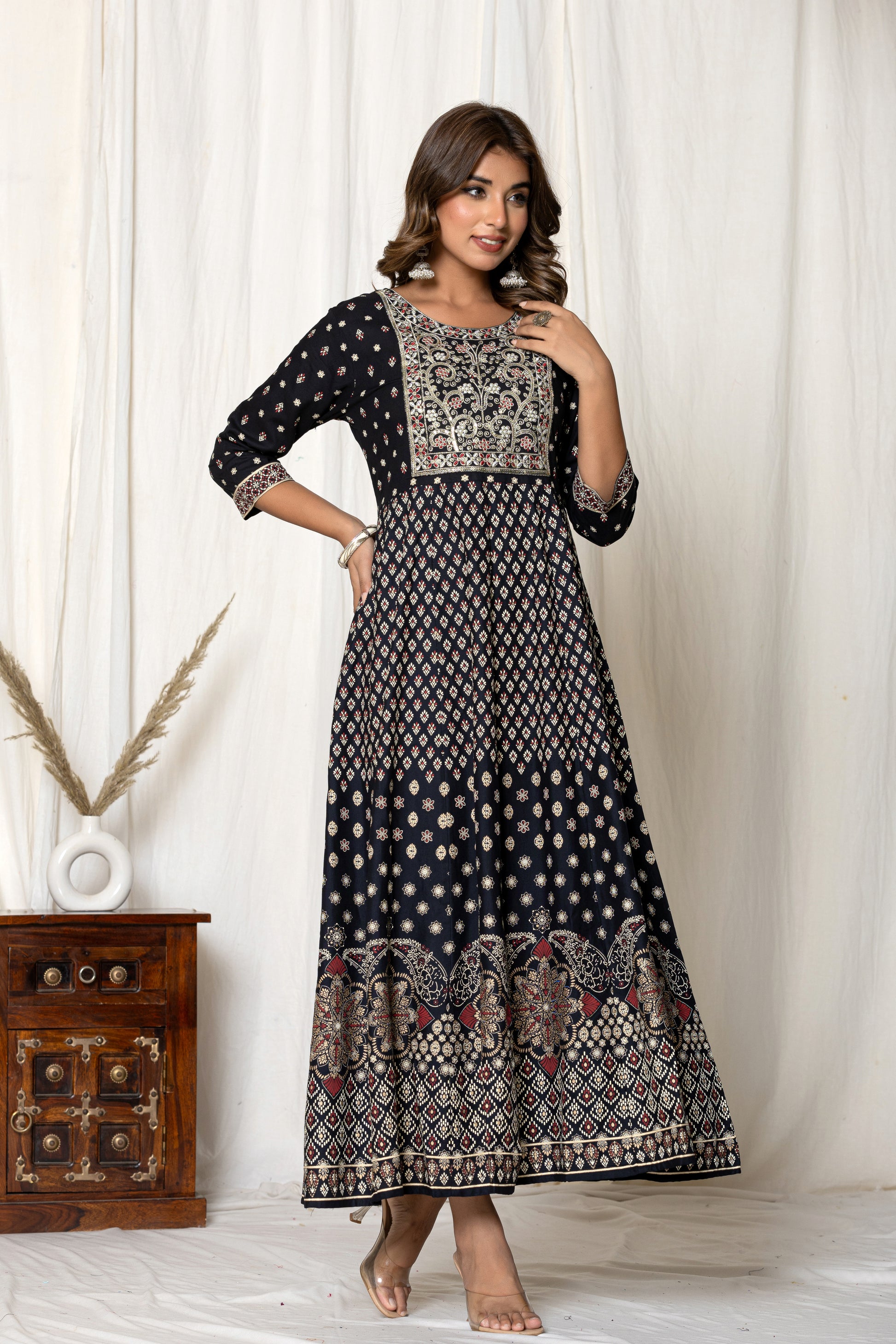 Women's Cotton Printed Dress | Ethnic Anarkali Dress with Sequin & Zari work