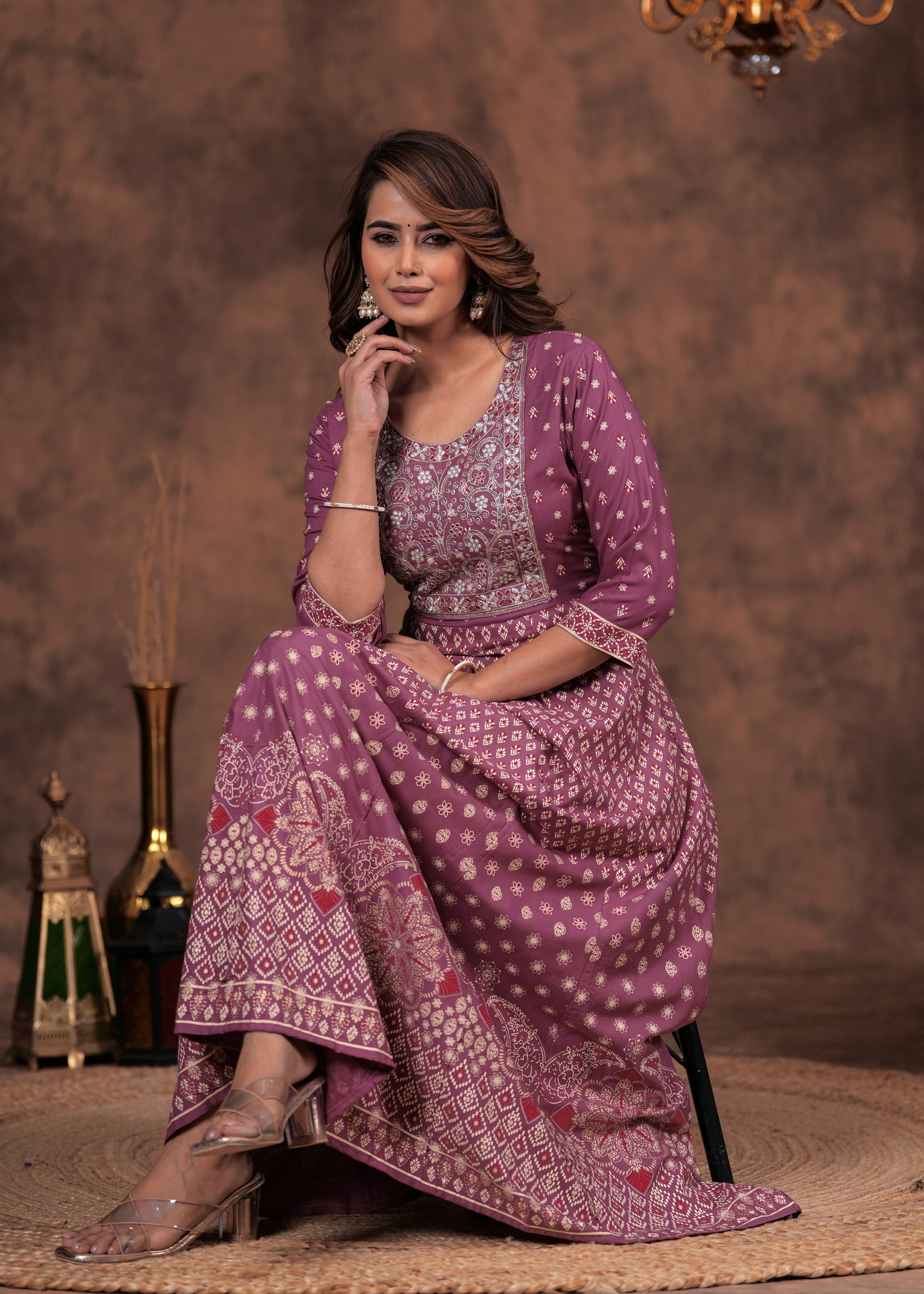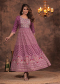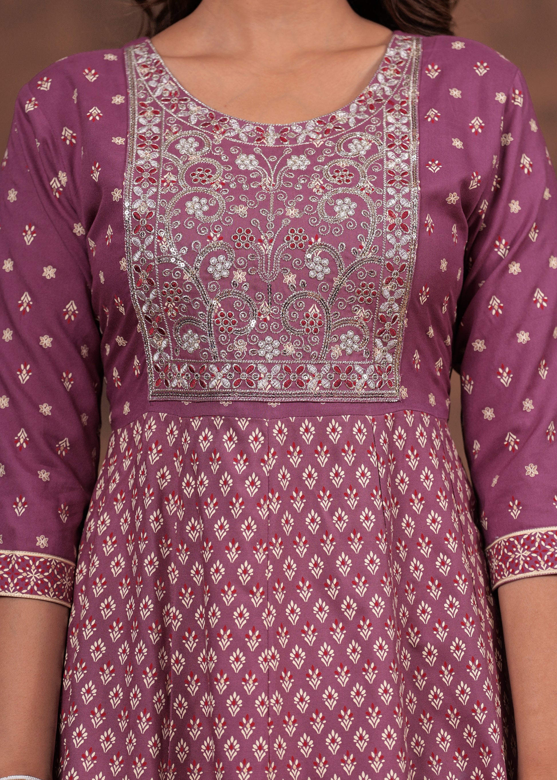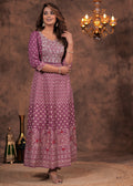 Bring elegance to your ethnic wardrobe with this stunning women's cotton pink printed Anarkali dress. Crafted from premium cotton fabric, this ethnic dress features exquisite sequin and zari work on the bodice, a flattering round neckline, and 3/4 sleeves. The beautifully detailed floral and geometric print and flared silhouette make it a perfect choice for festive events, family functions, or traditional celebrations. This cotton Anarkali dress for women is designed to offer both comfort and timeless charm.