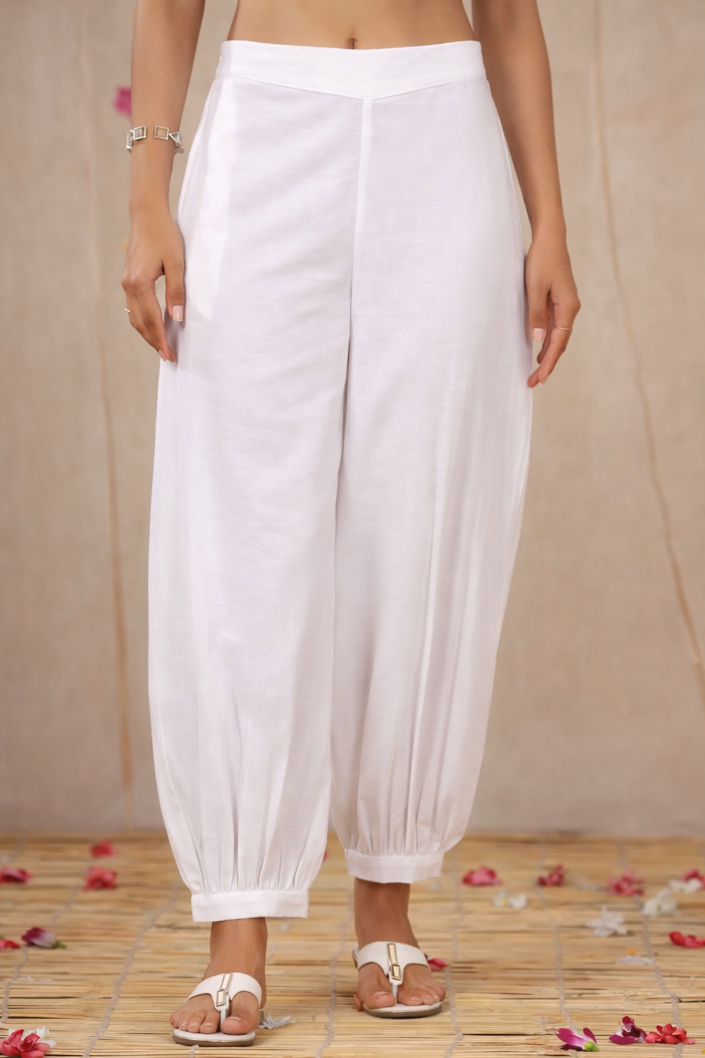 Women's Cotton Whited Dhoti Pant I Plain Dhoti with Pocket