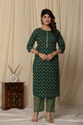 Women's Dark Green Cotton Fabric Printed Kurta Set