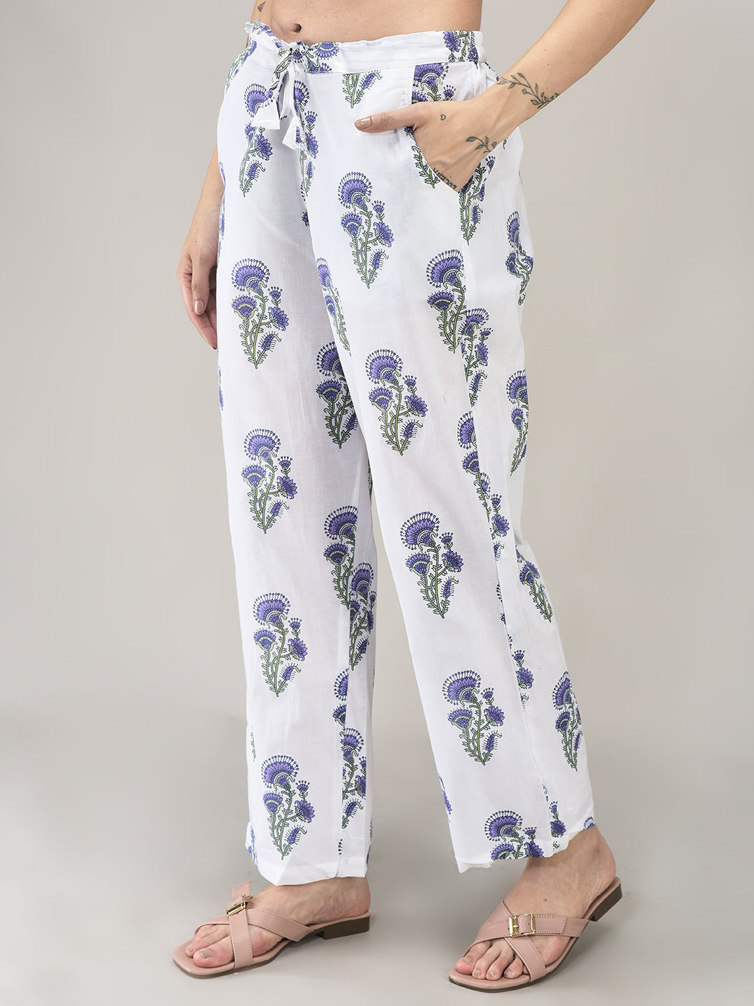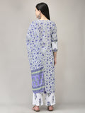 Women's Lavender Cotton Fabric Suit Set | Ethnic Floral Printed Straight Kurta with Pants & Dupatta