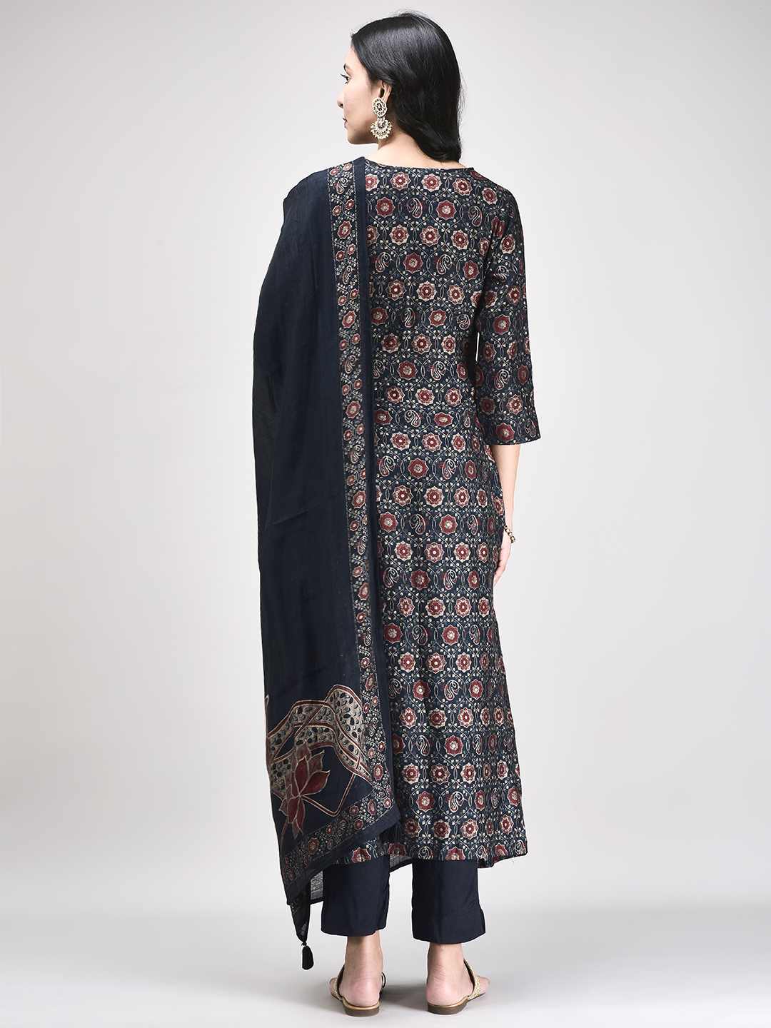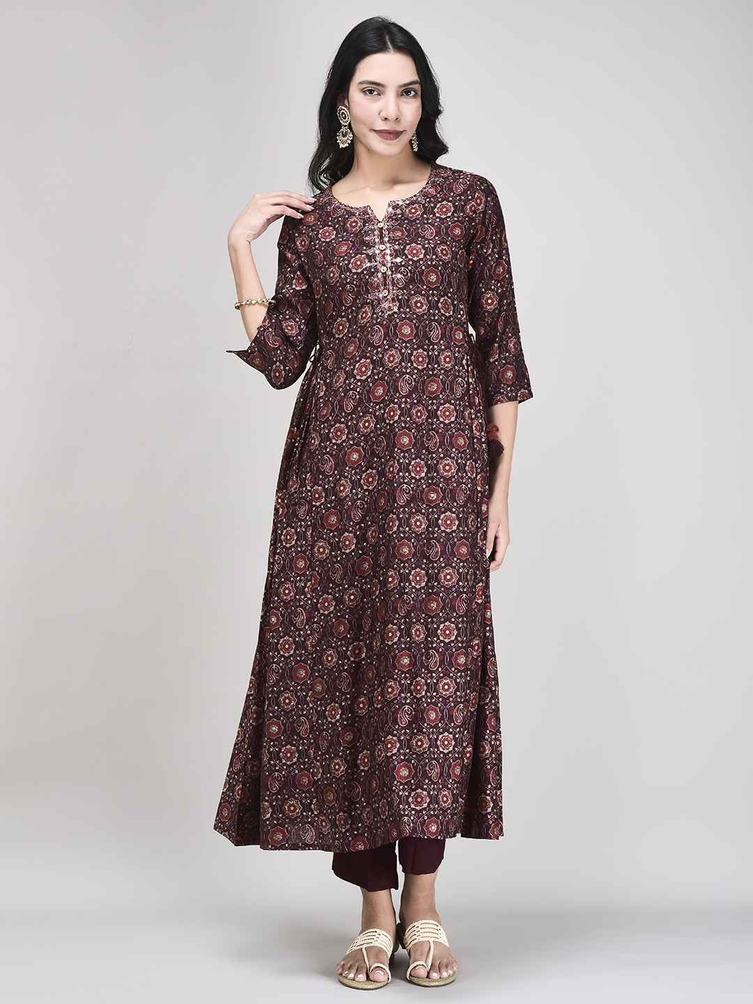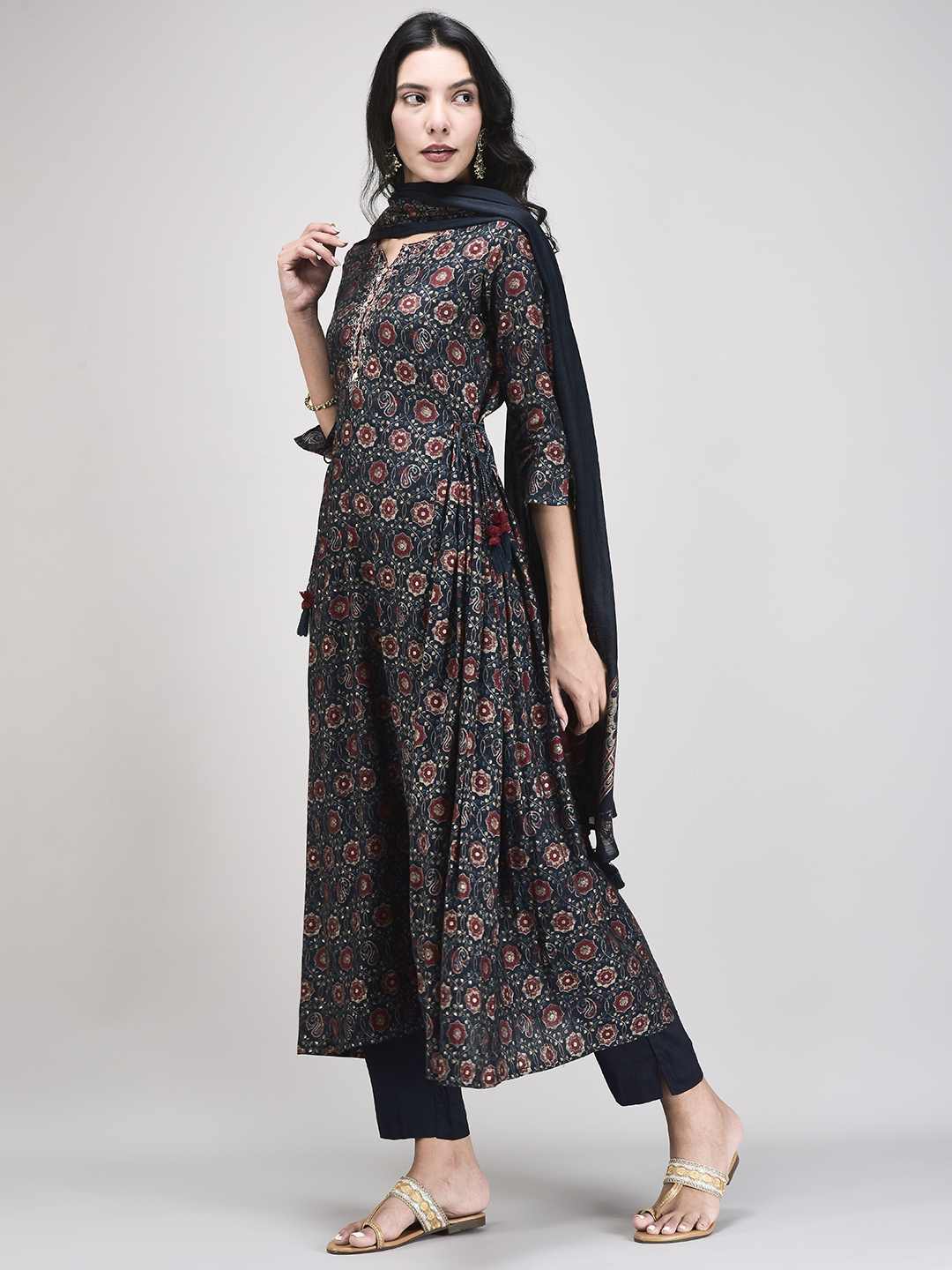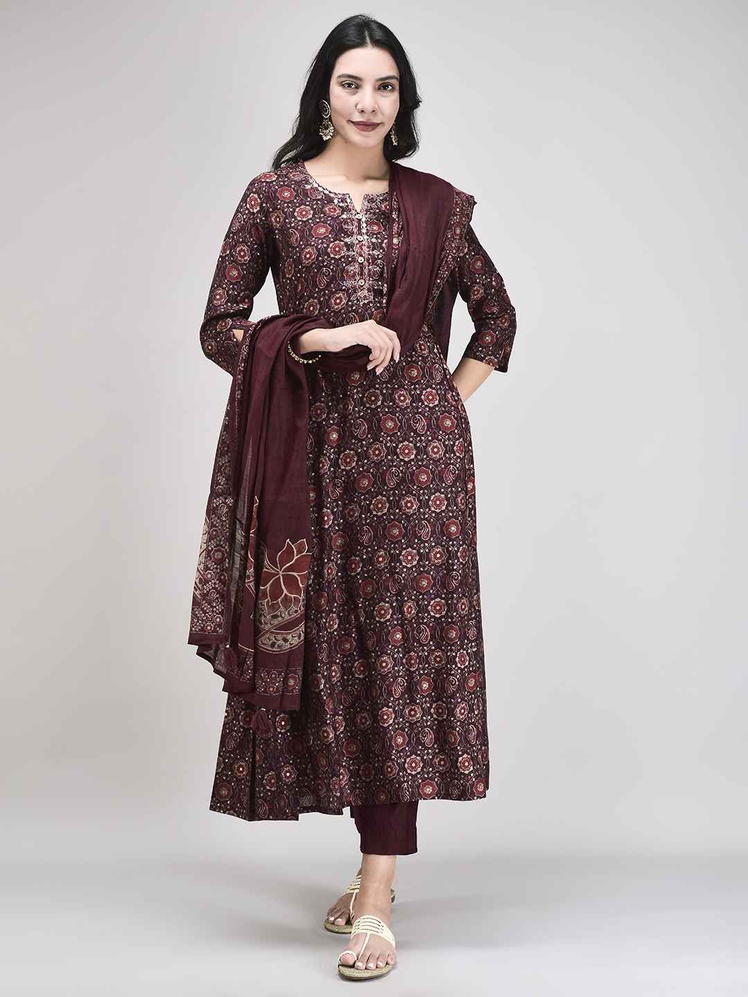 Women's Modal Fabric Ethnic Suit Set | Printed Flared Kurta with Pants & Dupatta