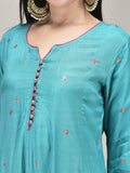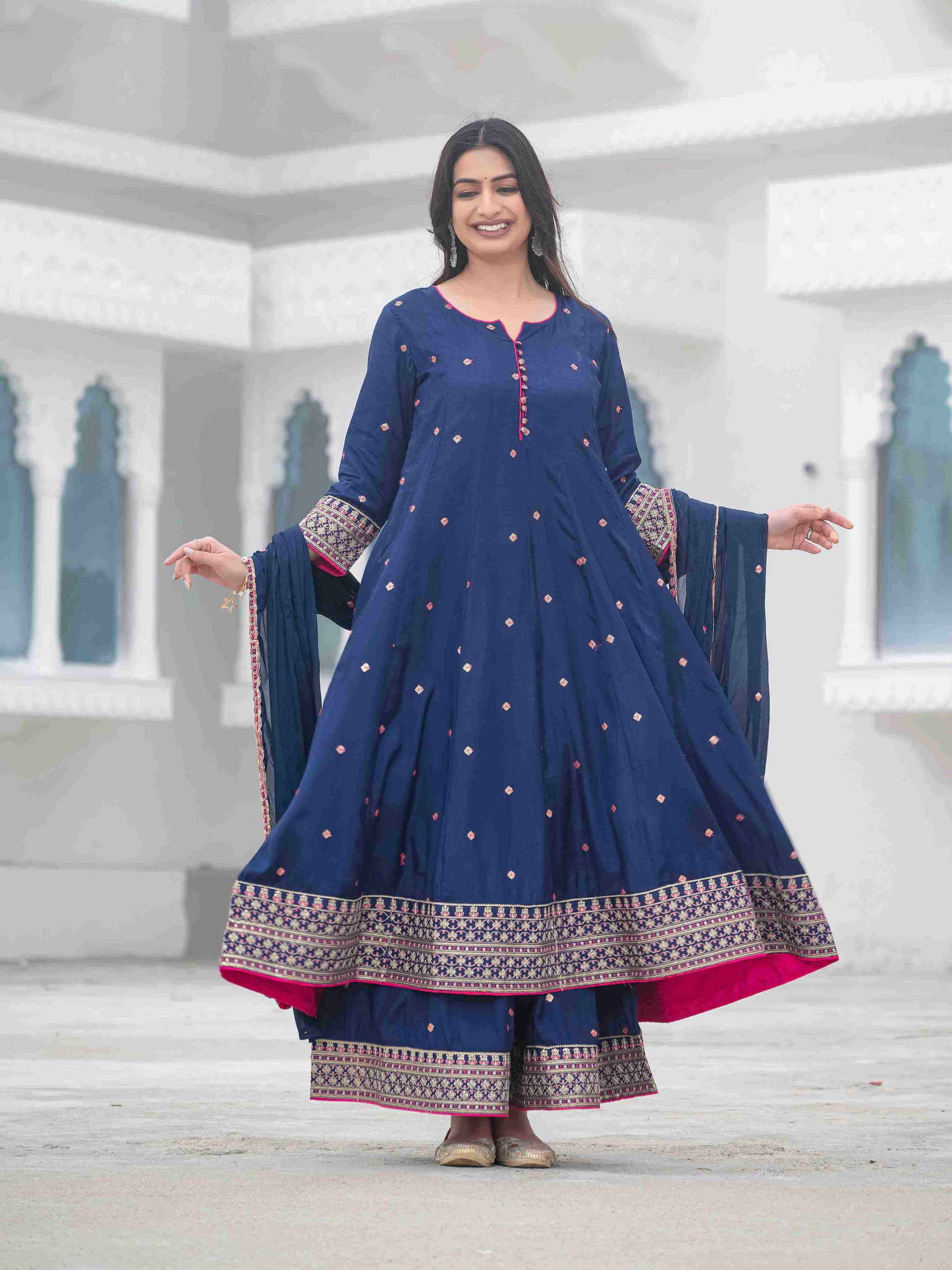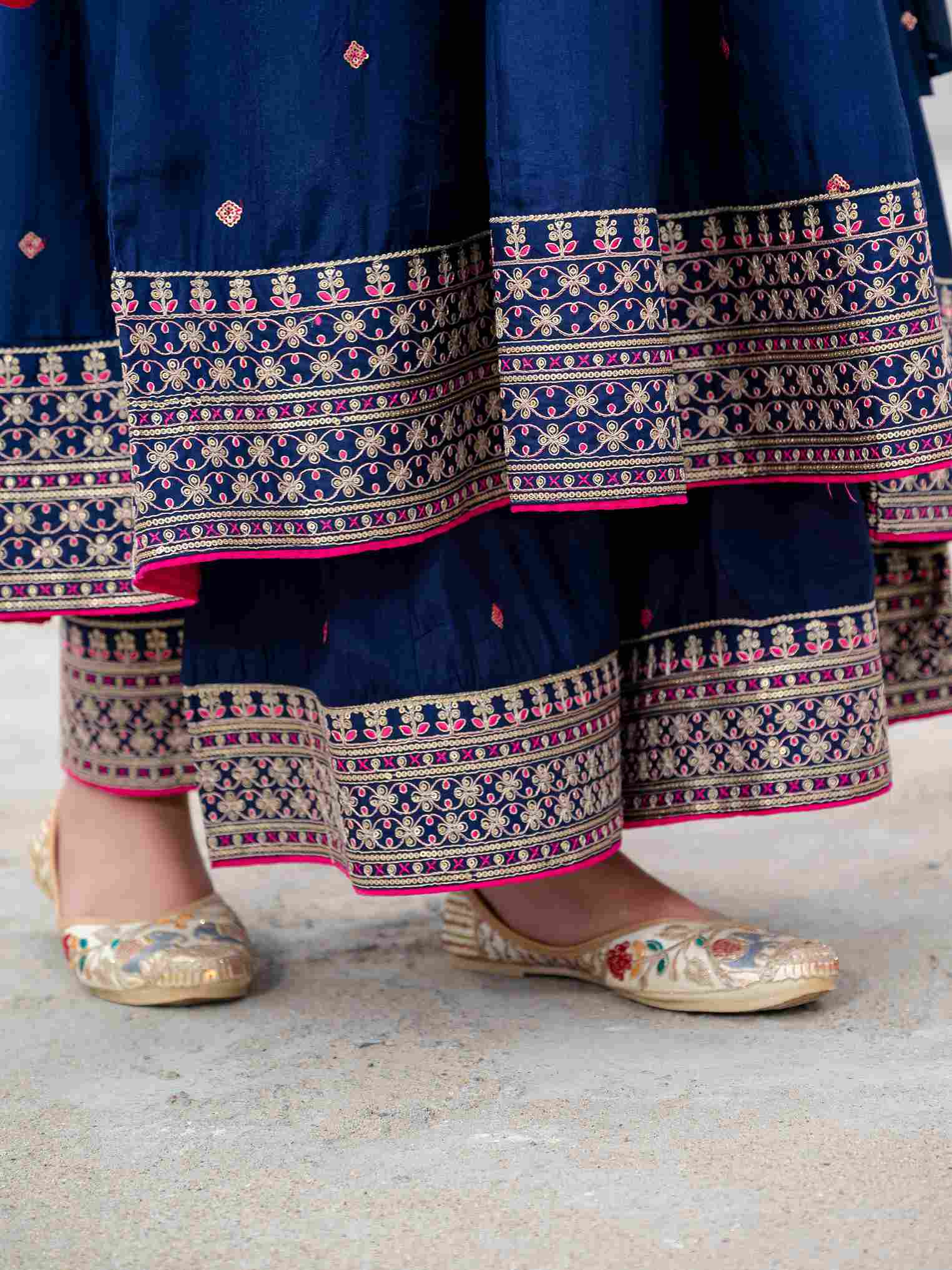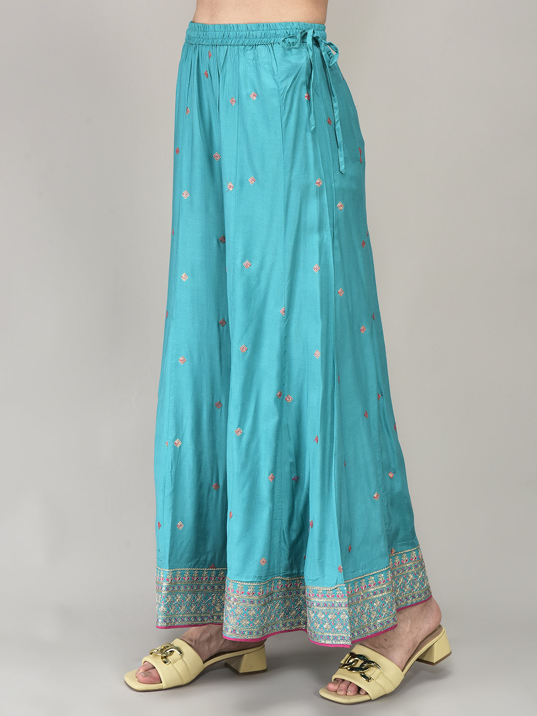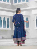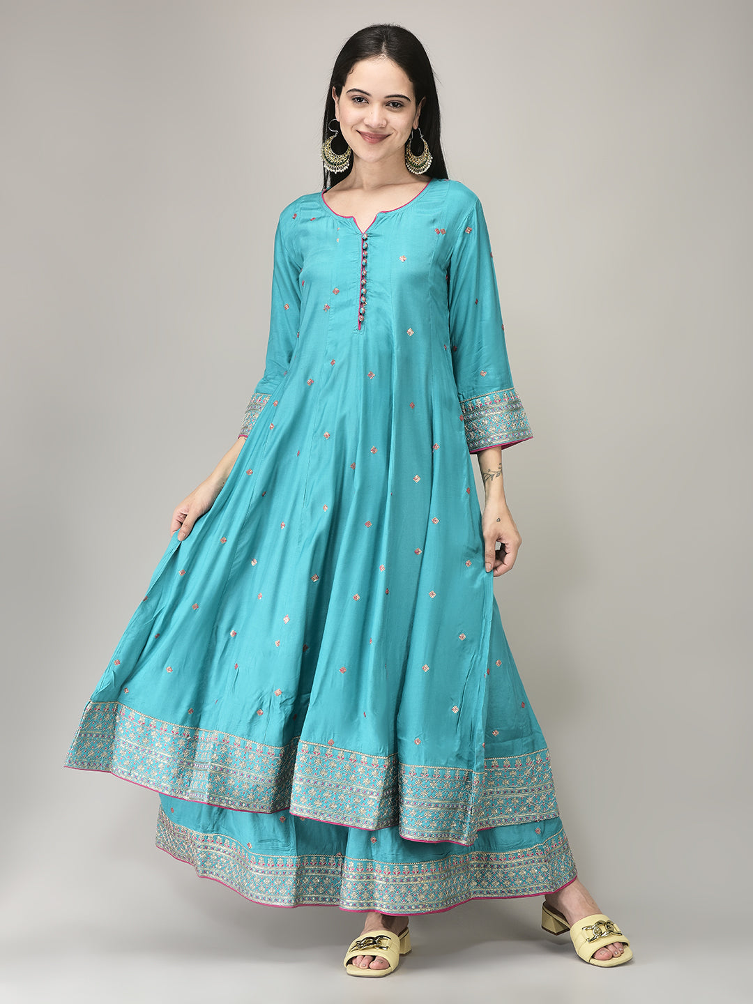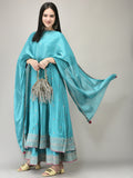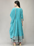Women's Muslin Embroidered Suit Set I Ethnic Flared Kurta with Palazzo & Dupatta