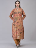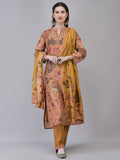 Women's Mustard Silk Fabric Printed Suit Set I Ethnic Straight Kurta with Pants & Printed Dupatta