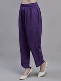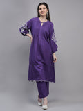 Women's Purple Rayon Fabric Kurta With Pockets and pants