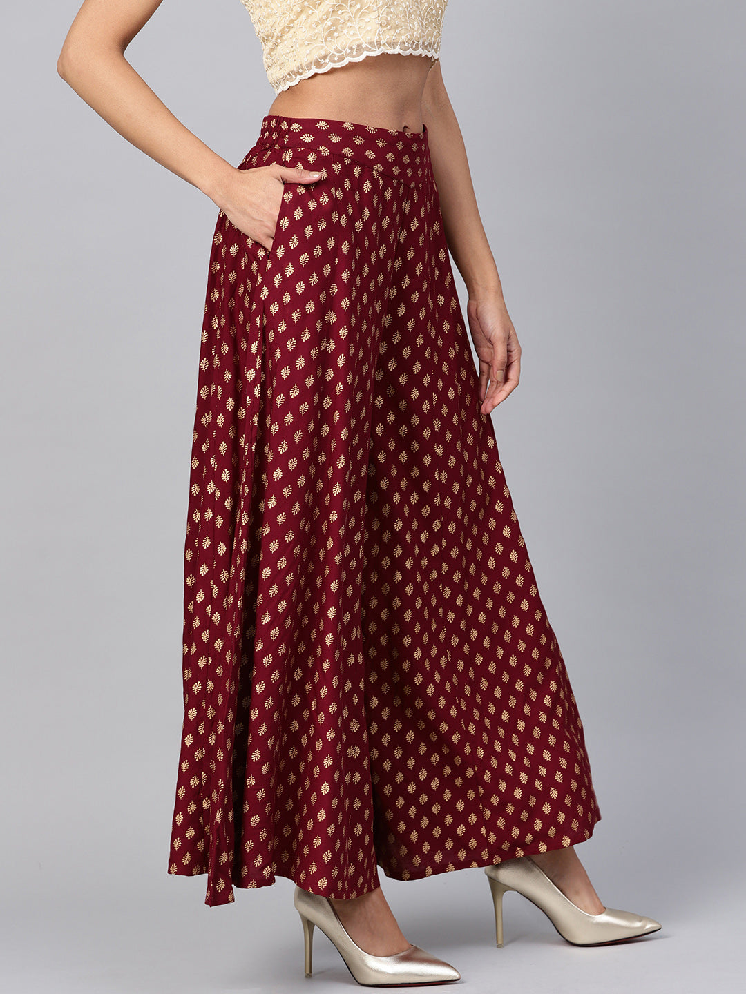 Women's Rayon Maroon Printed Palazzo