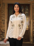 Women's Rayon Off-White Embroidered Shirt | Regular Embroidered Shirt