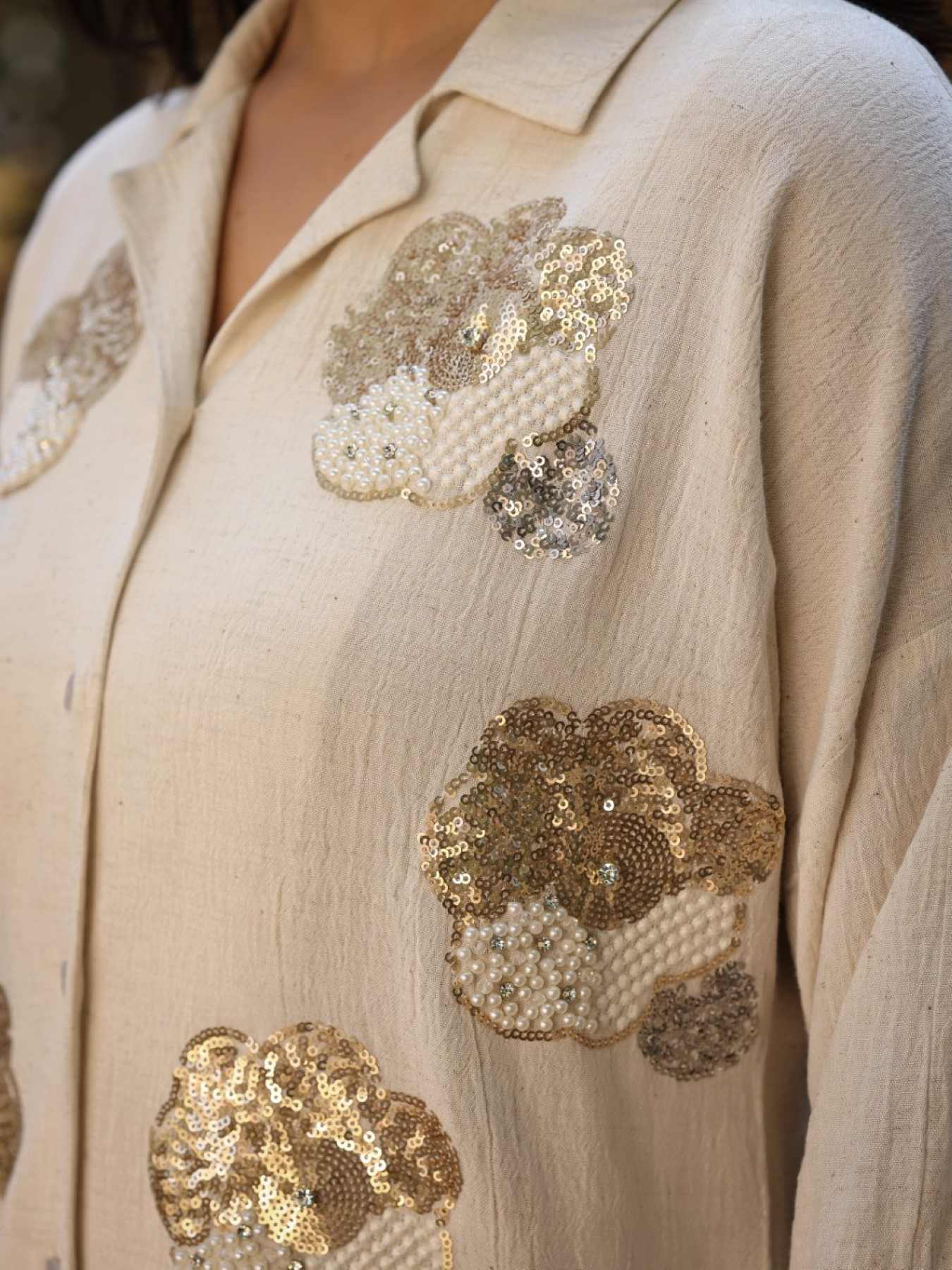 Step into timeless elegance with this women’s off-white rayon embroidered shirt, designed for both comfort and class. Made from soft, breathable rayon fabric, this shirt features beautiful floral embroidery, a smart collared neckline, and full sleeves. With its regular fit, it’s perfect for office wear, brunch dates, or casual outings. Pair it with jeans or trousers for a chic, polished look.