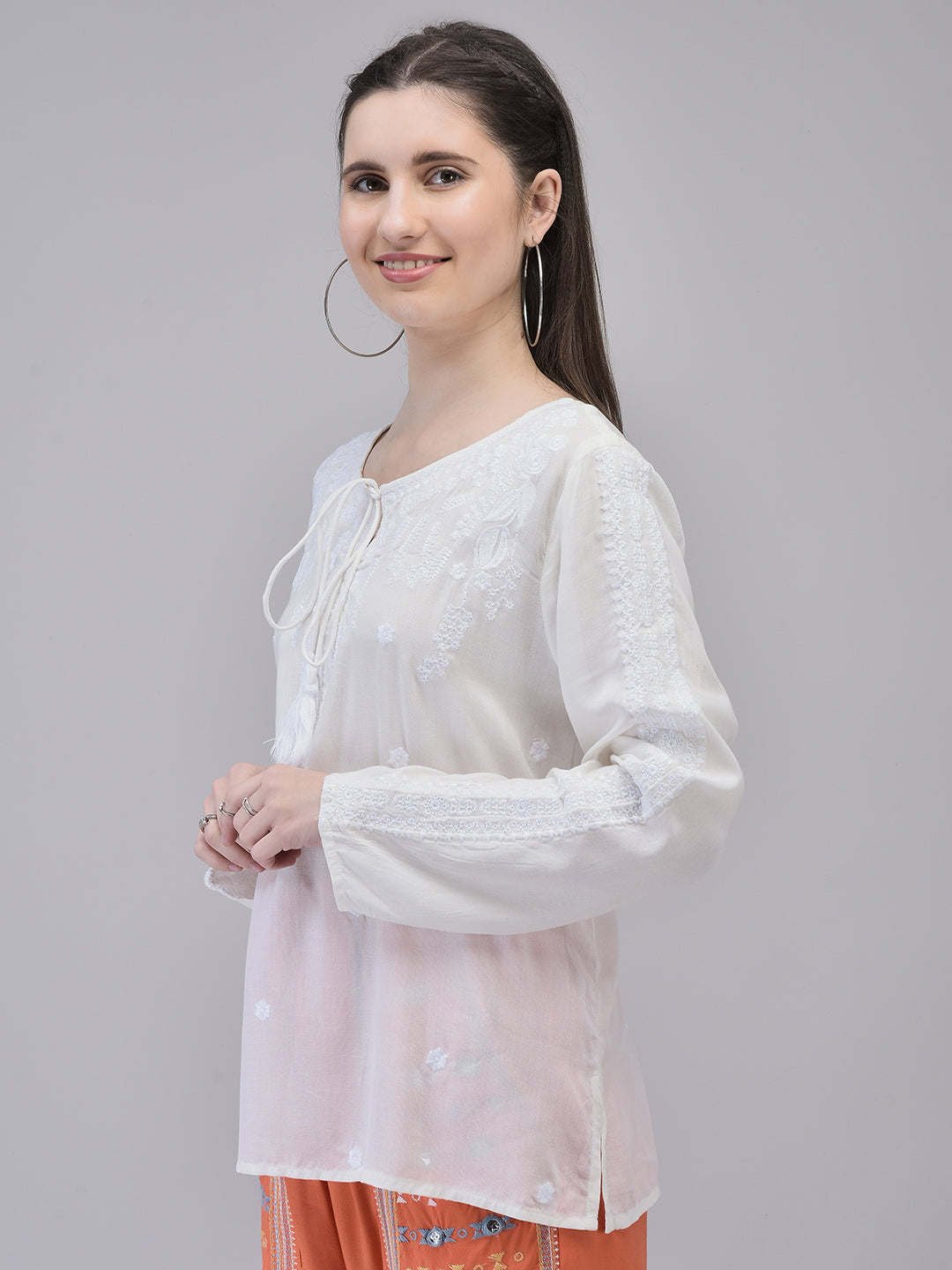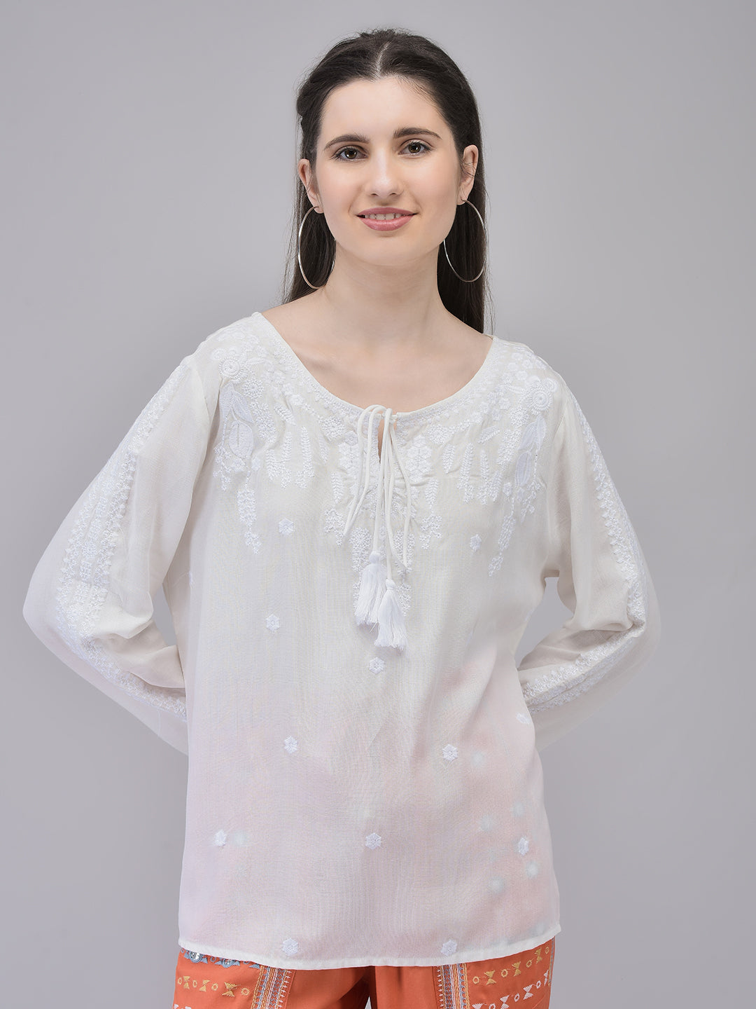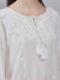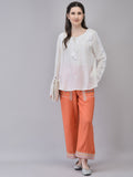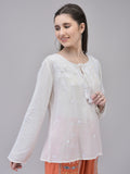 Women's Rayon Off-white Top | Regular Top with Tie Details