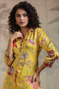 Add a touch of sunshine to your wardrobe with this Yellow Satin Floral & Sequin Work Co-ord Set. Crafted from premium satin fabric, this elegant ensemble features delicate floral patterns adorned with shimmering sequin detailing, offering the perfect balance of grace and glamour. The smooth, glossy texture of satin enhances the rich yellow hue, making it an ideal outfit for festive occasions, brunches, or evening parties.